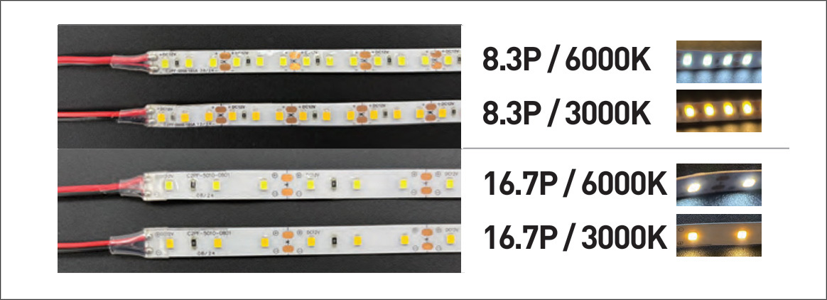 ▼LED数:120球/m [ピッチ(素子間):8.3mm] LEDチップ(2835SMD)
